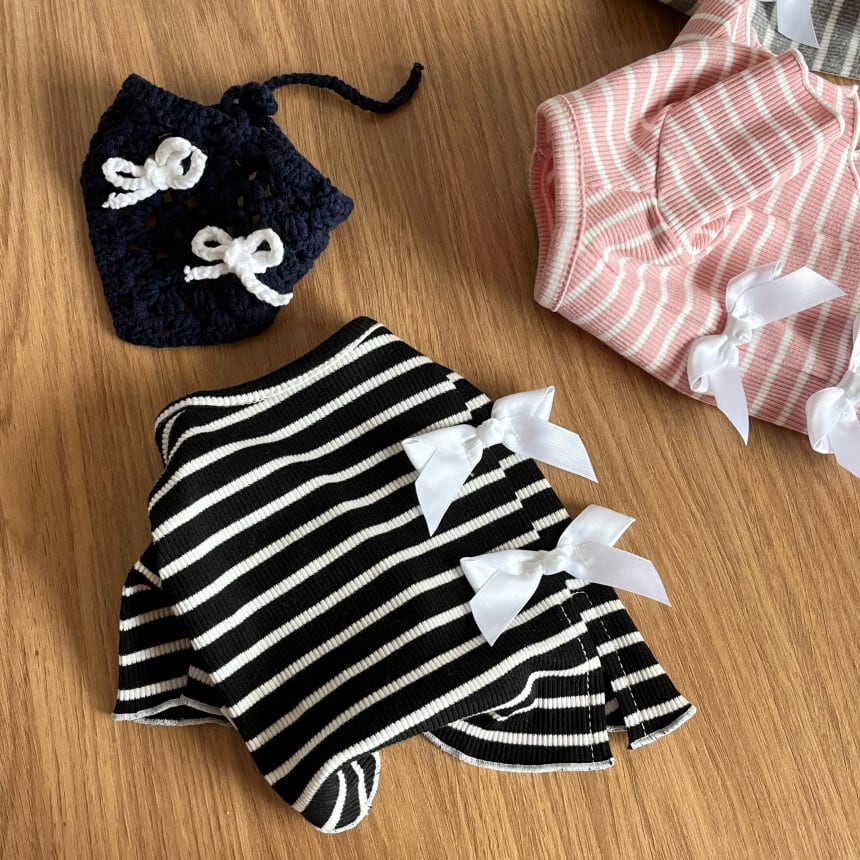【予約】〔pinna select〕リボンストライプTシャツ(3color)