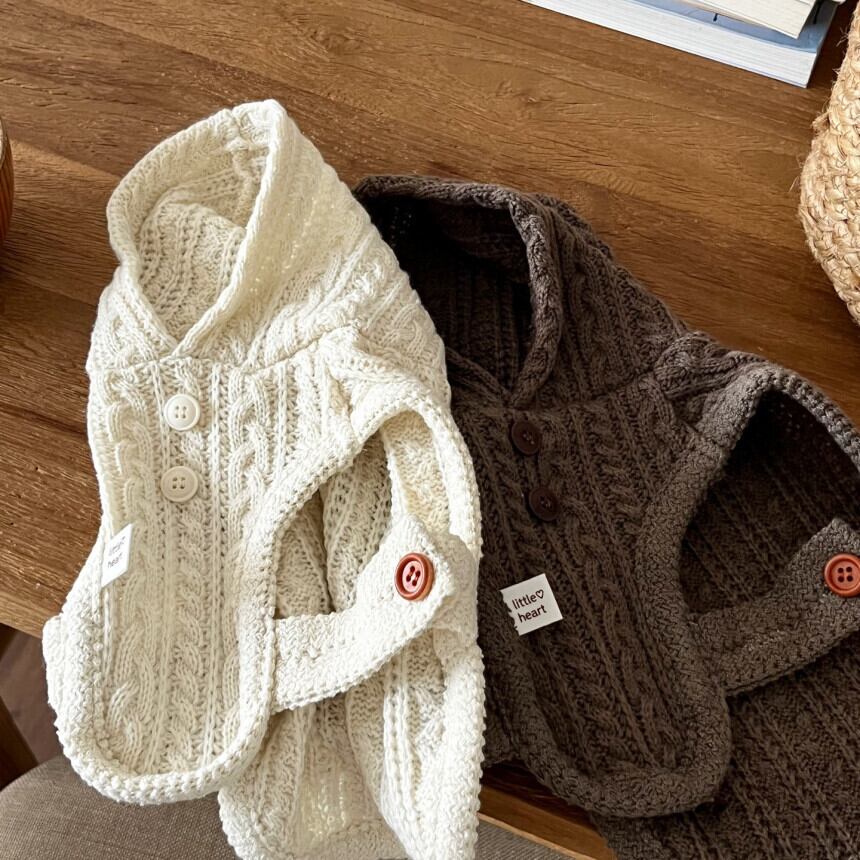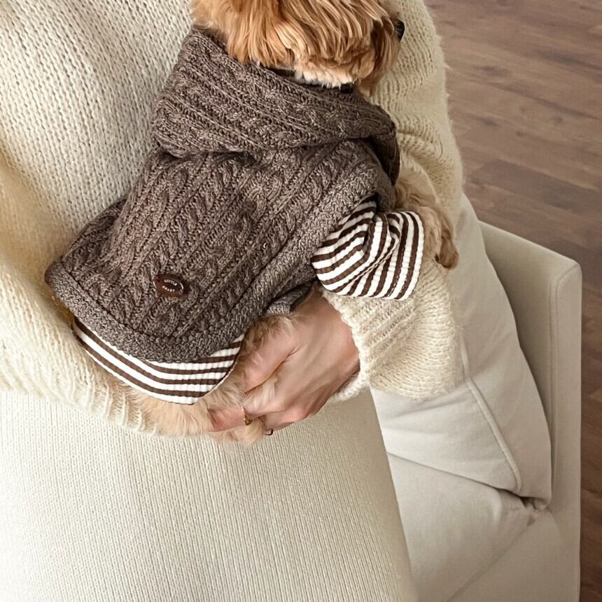 ニットのディティールとフードがカジュアルでありながらも