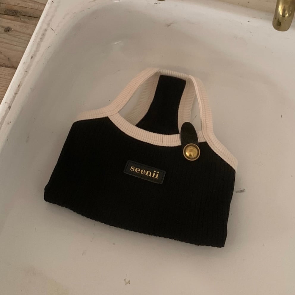 綺麗なシグネチャーラベルと、ヘアピンがついたトップスは