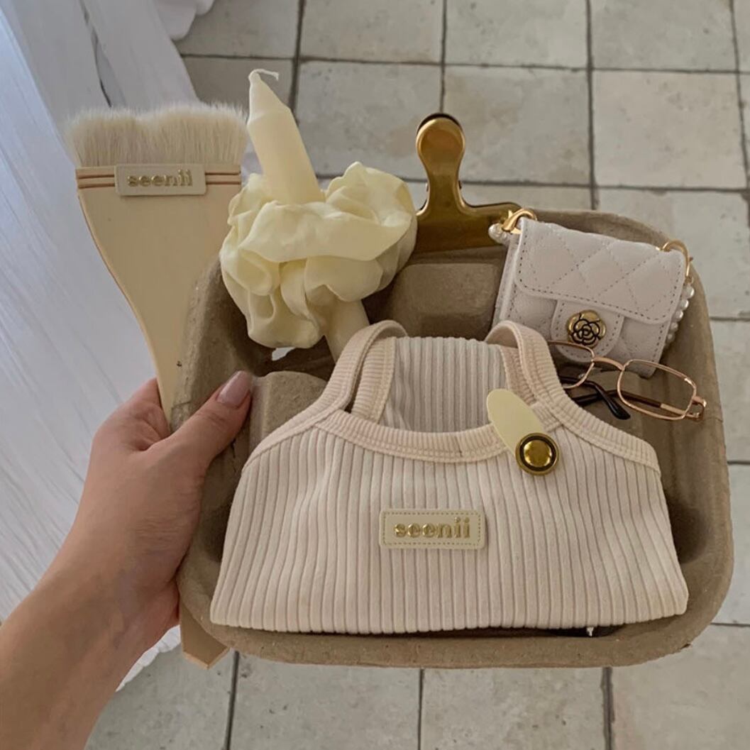 綺麗なシグネチャーラベルと、ヘアピンがついたトップスは