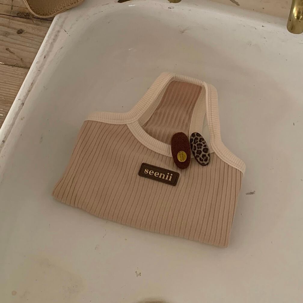 綺麗なシグネチャーラベルと、ヘアピンがついたトップスは