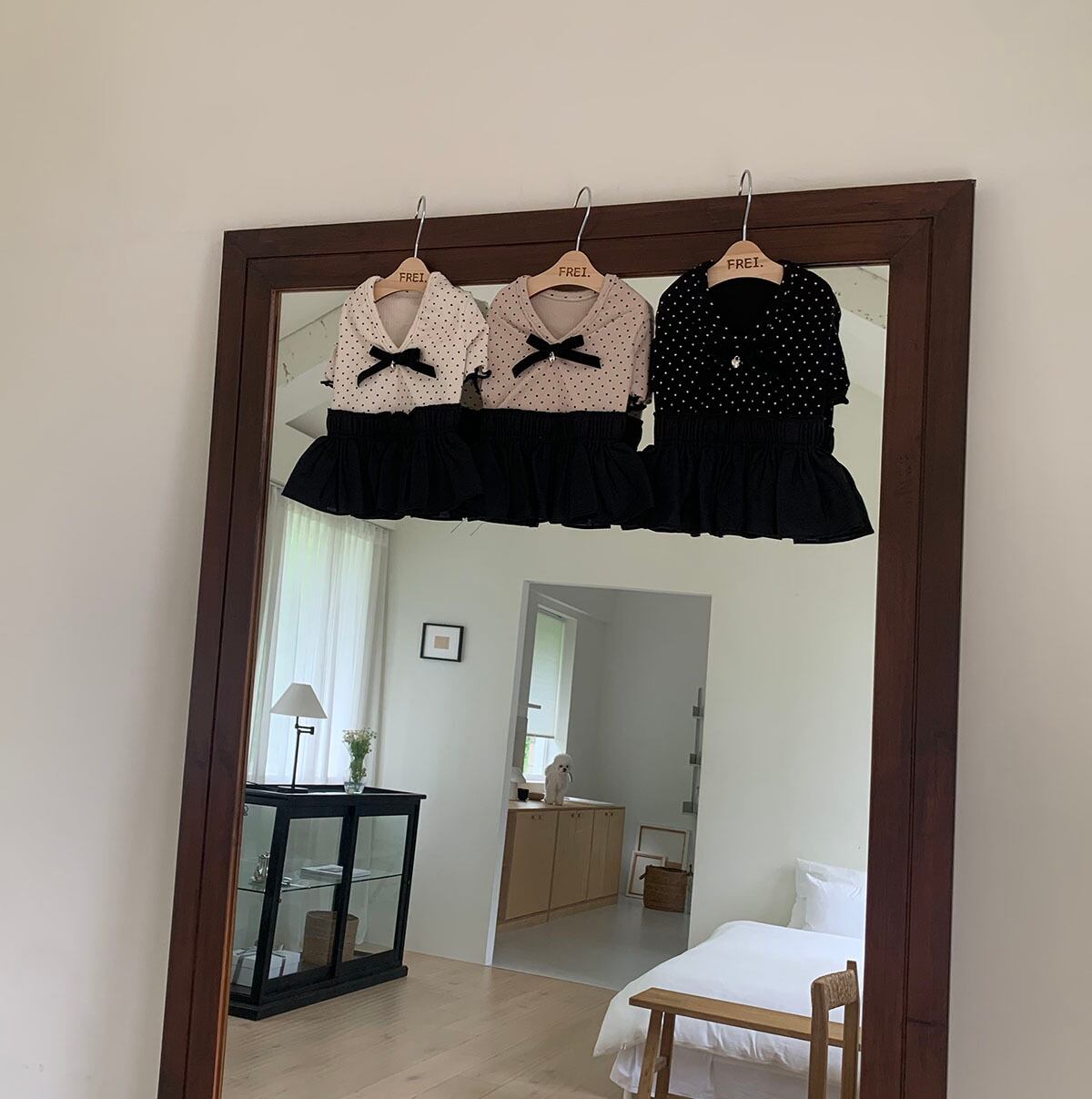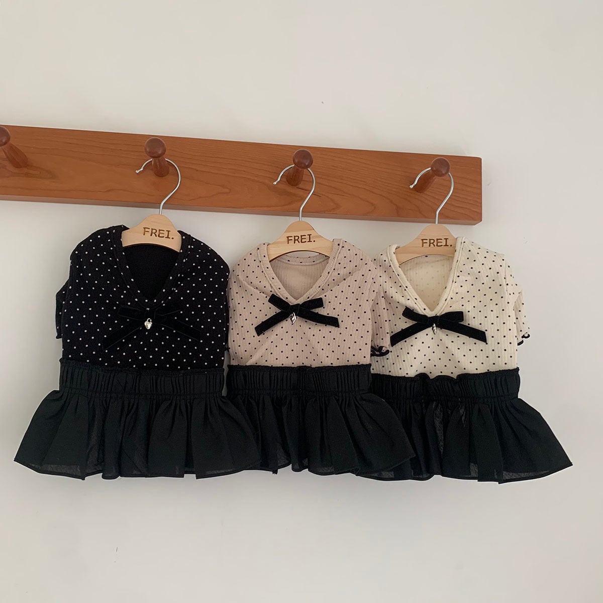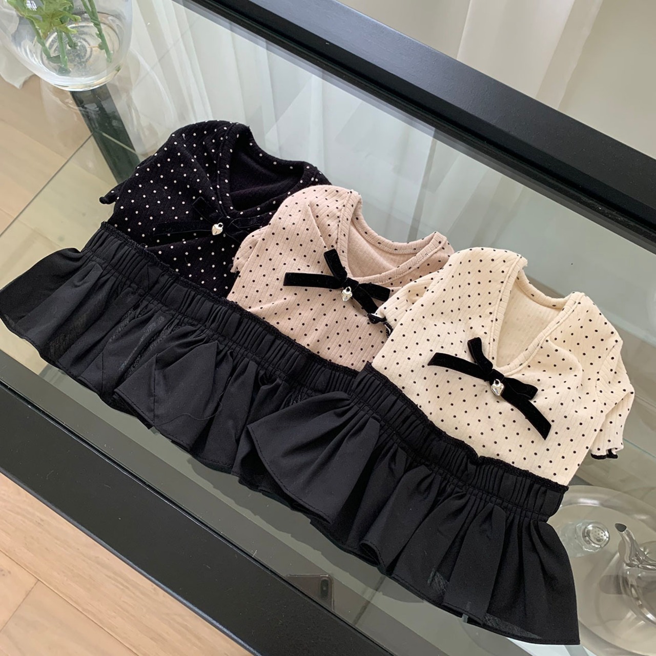 【即納】〔pinna select〕ベルベットリボンドットワンピース(3color)