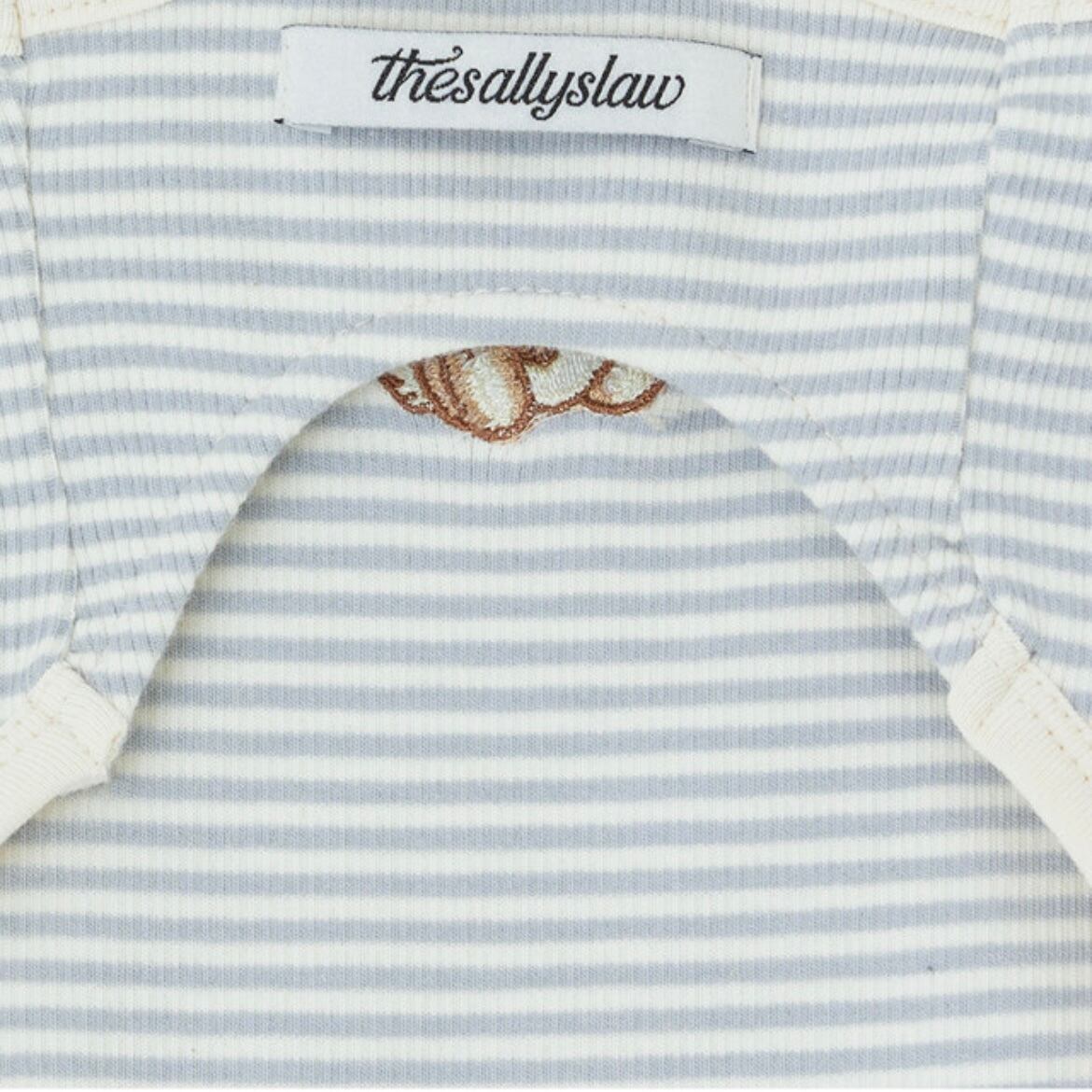 thesallyslawシグネチャーのバニー刺繍が入ったロンパース。