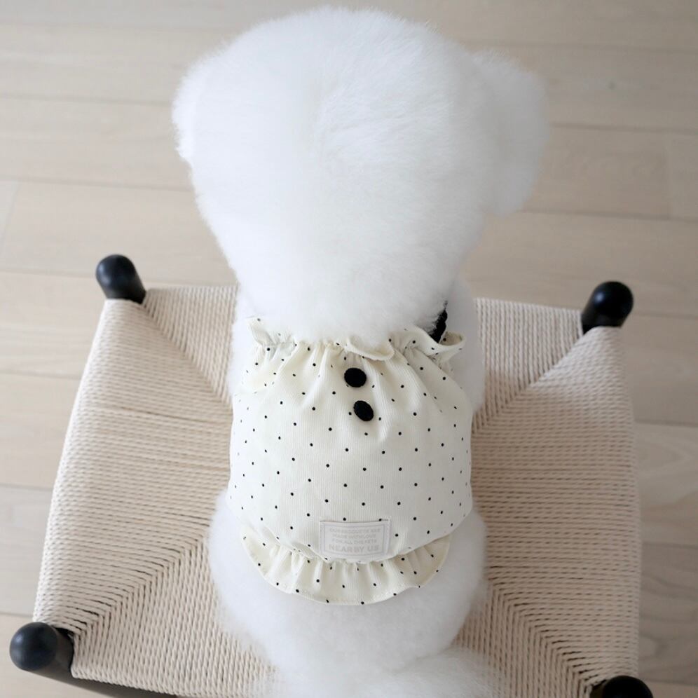 【即納】〔near by us〕corduroy dot crop top(cream Mサイズ)