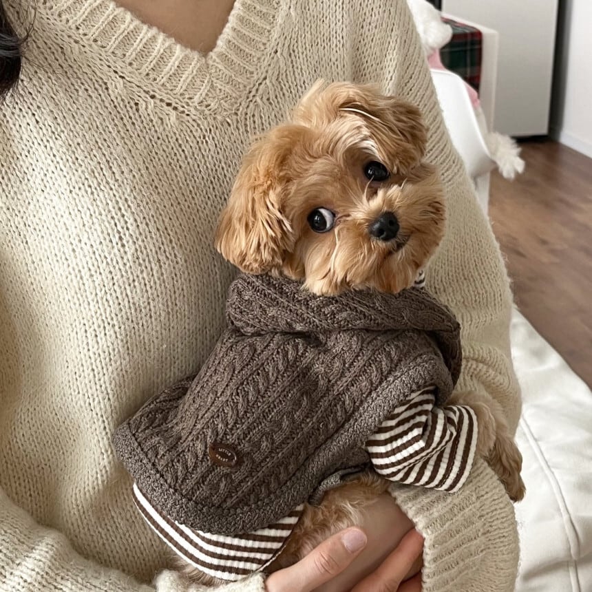 ニットのディティールとフードがカジュアルでありながらも