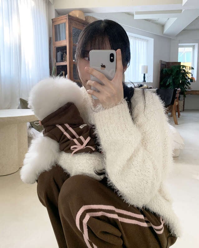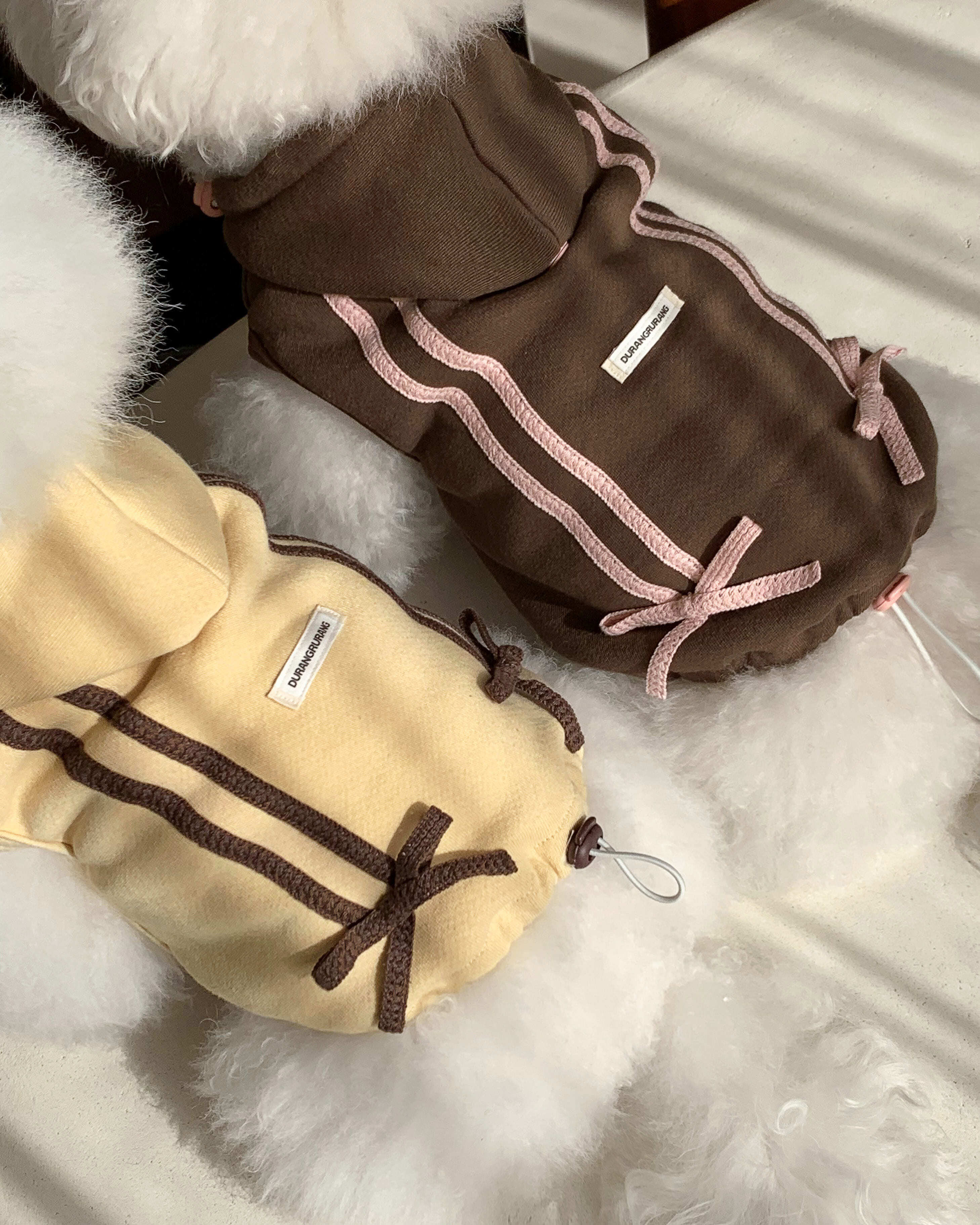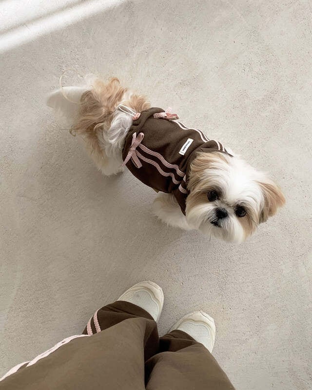 一緒に発売される、飼い主さま用のリボントラックジョガーパンツを合わせて