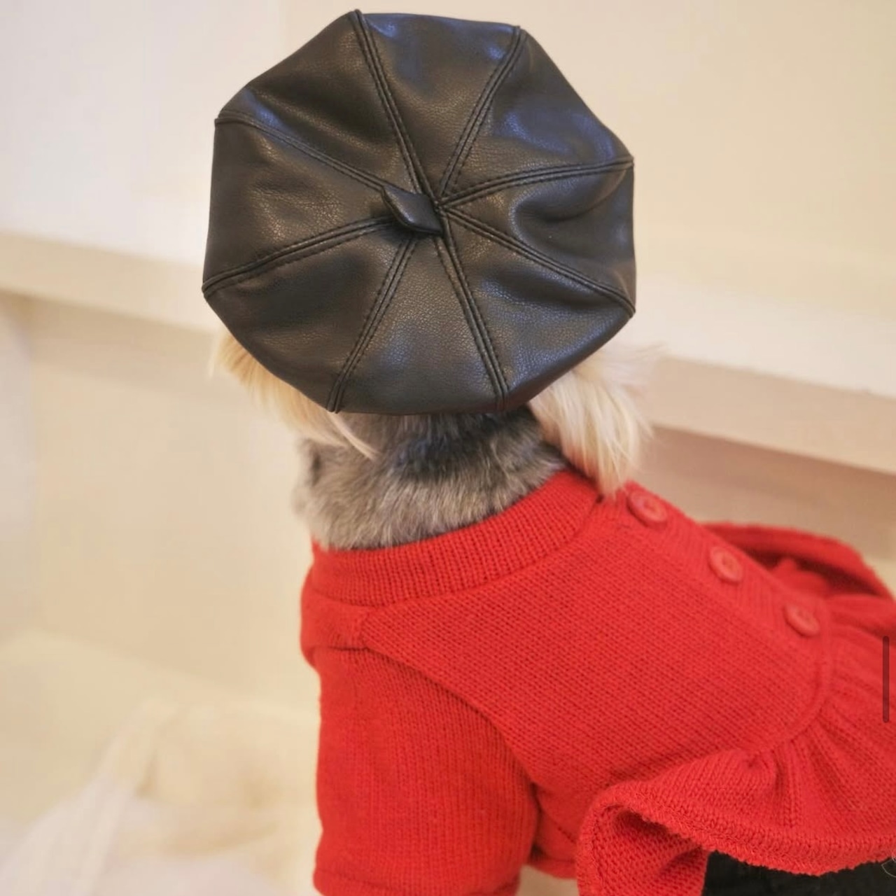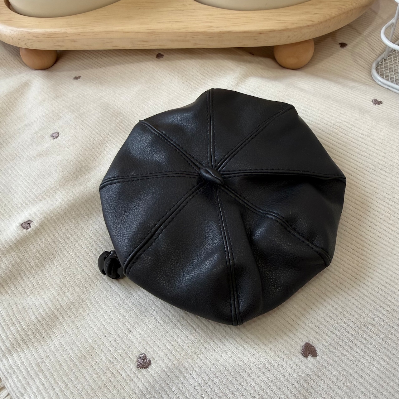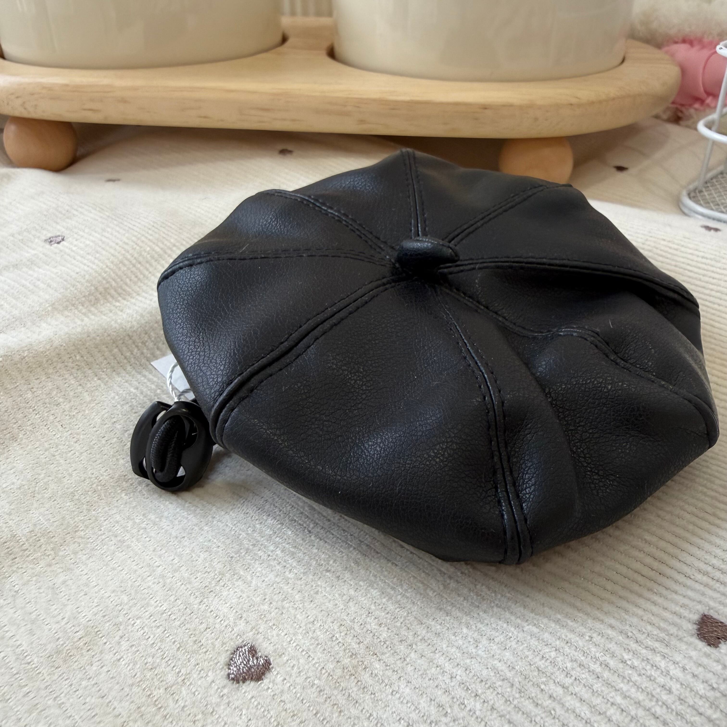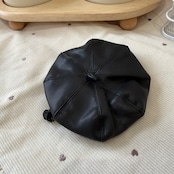 一気にトレンドあるスタイルが完成するレザーべレー帽。