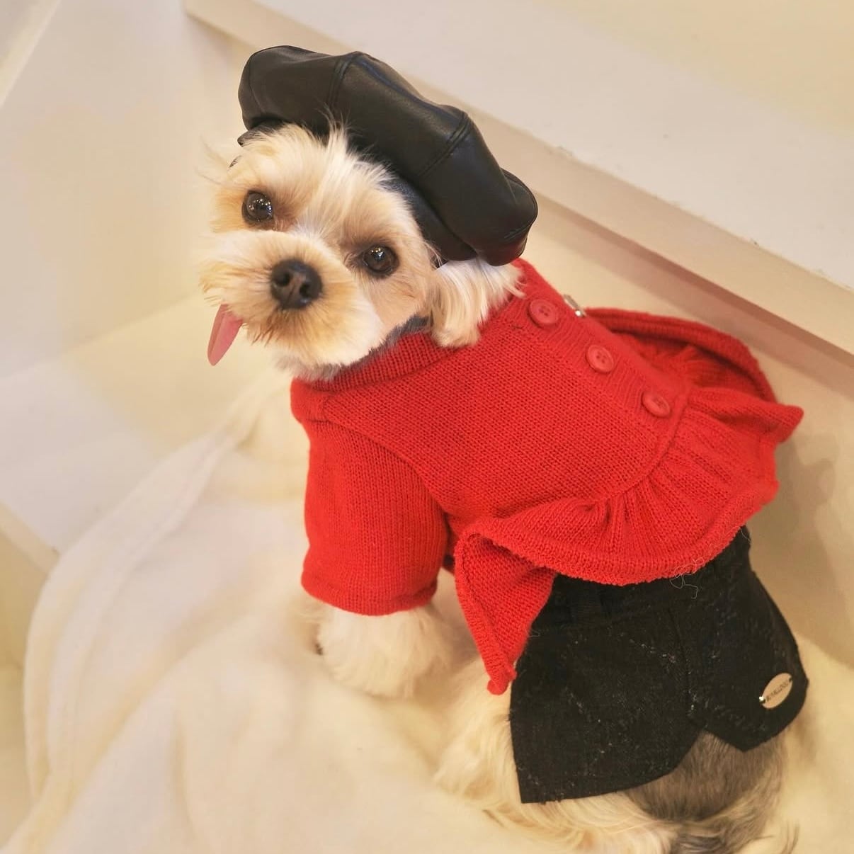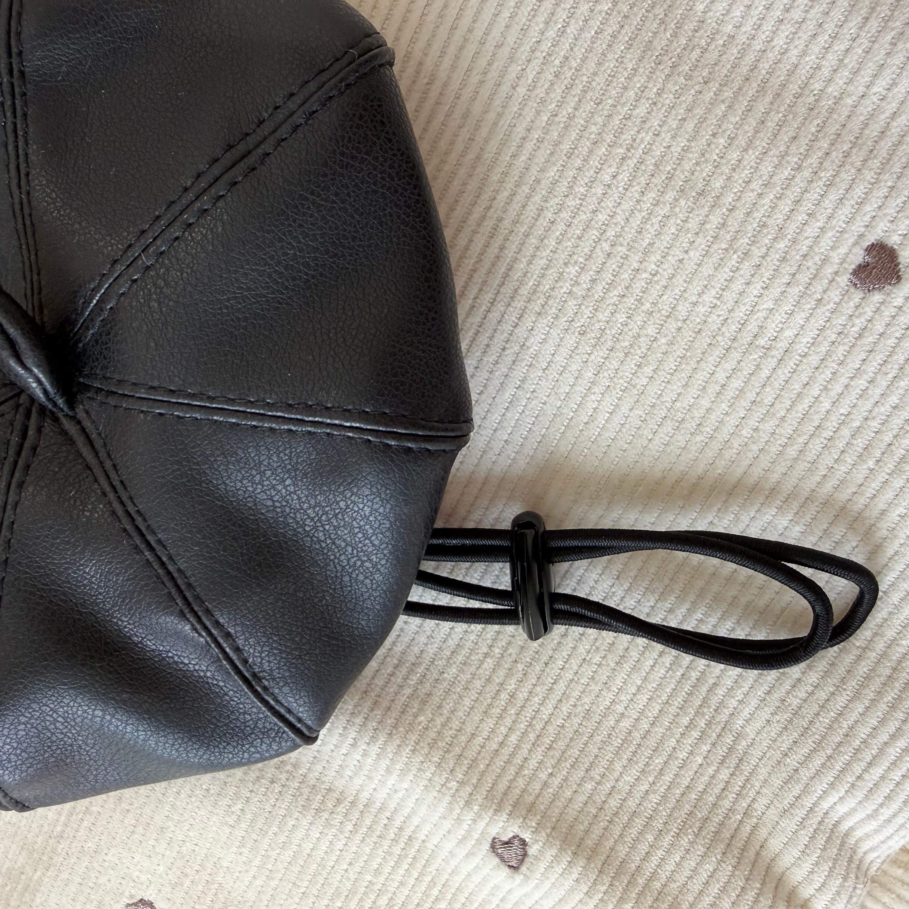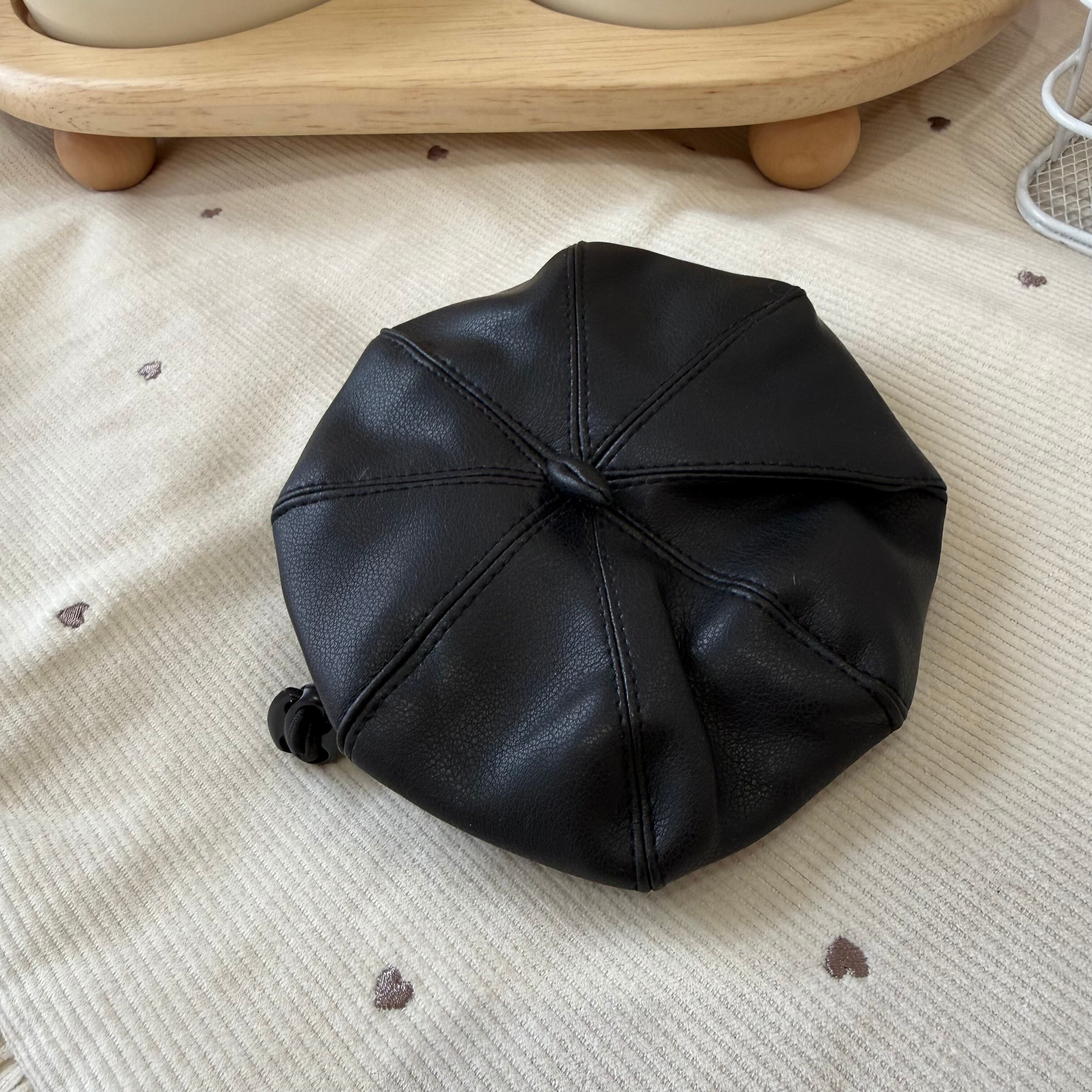 一気にトレンドあるスタイルが完成するレザーべレー帽。