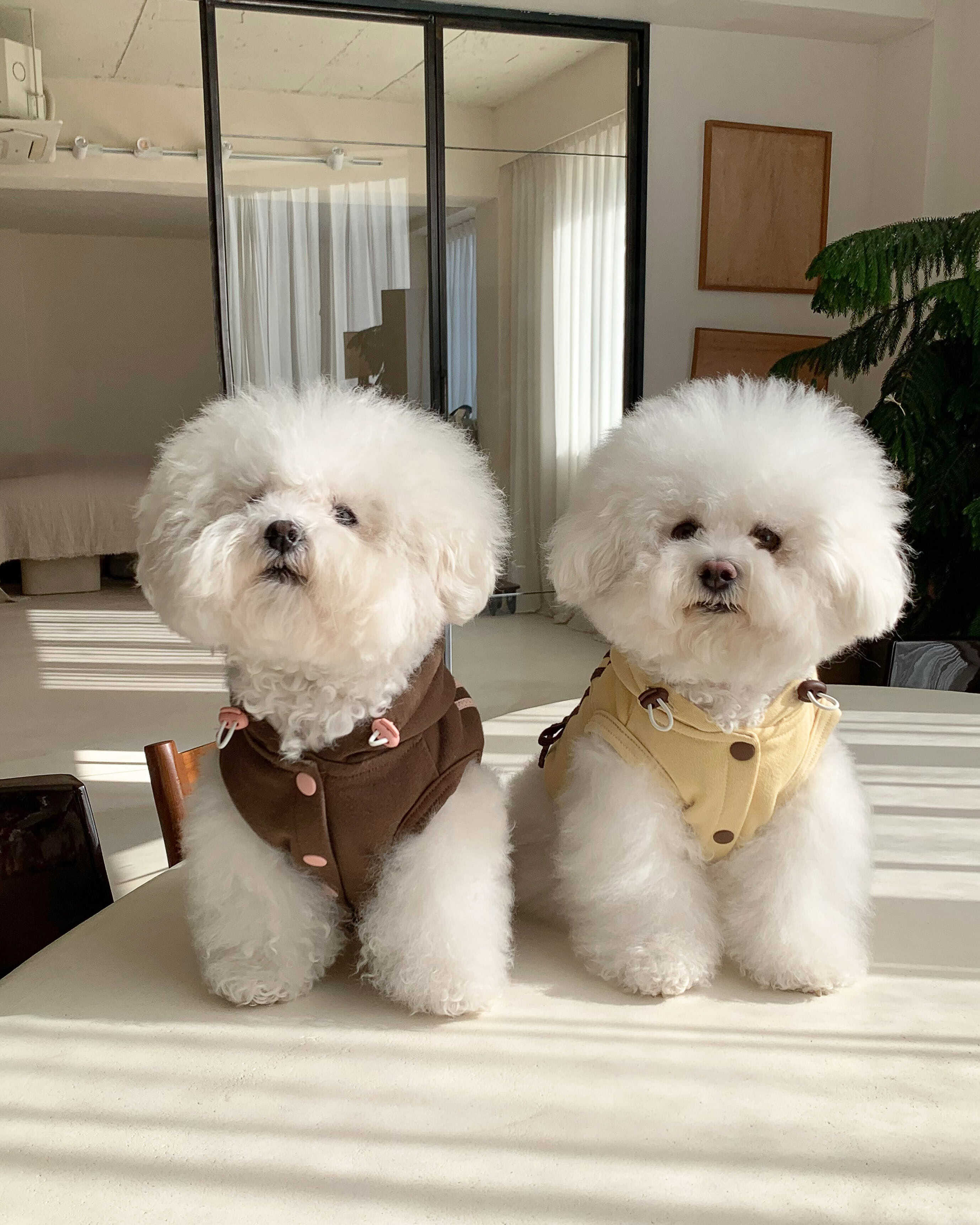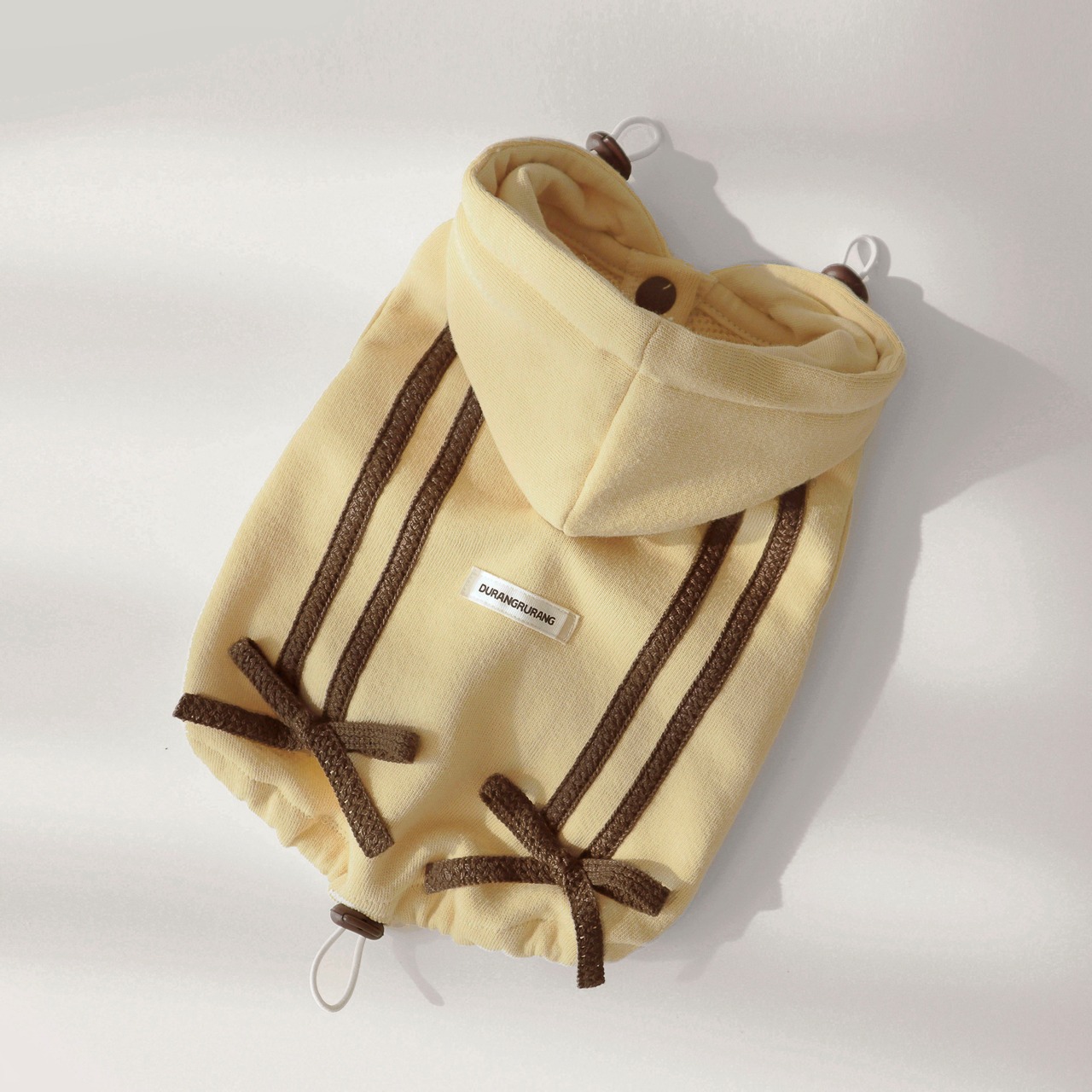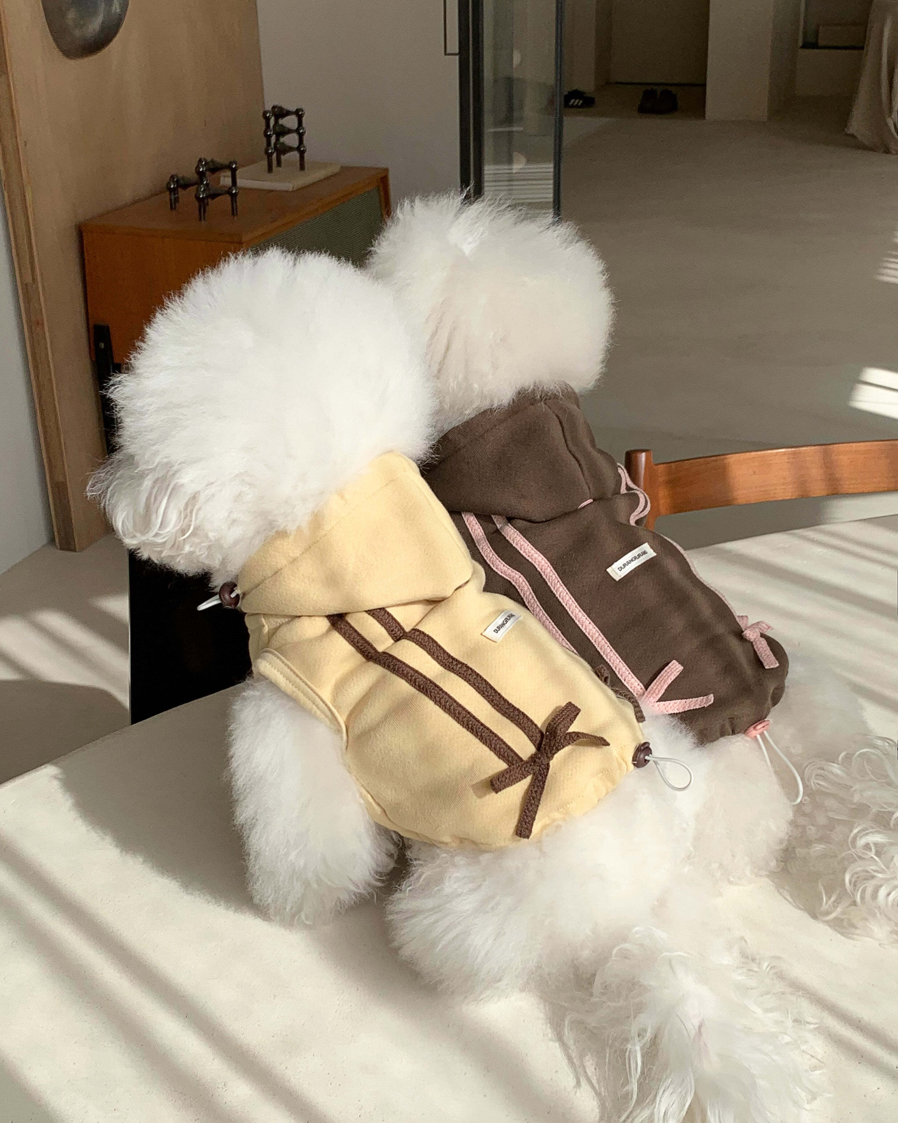 一緒に発売される、飼い主さま用のリボントラックジョガーパンツを合わせて
