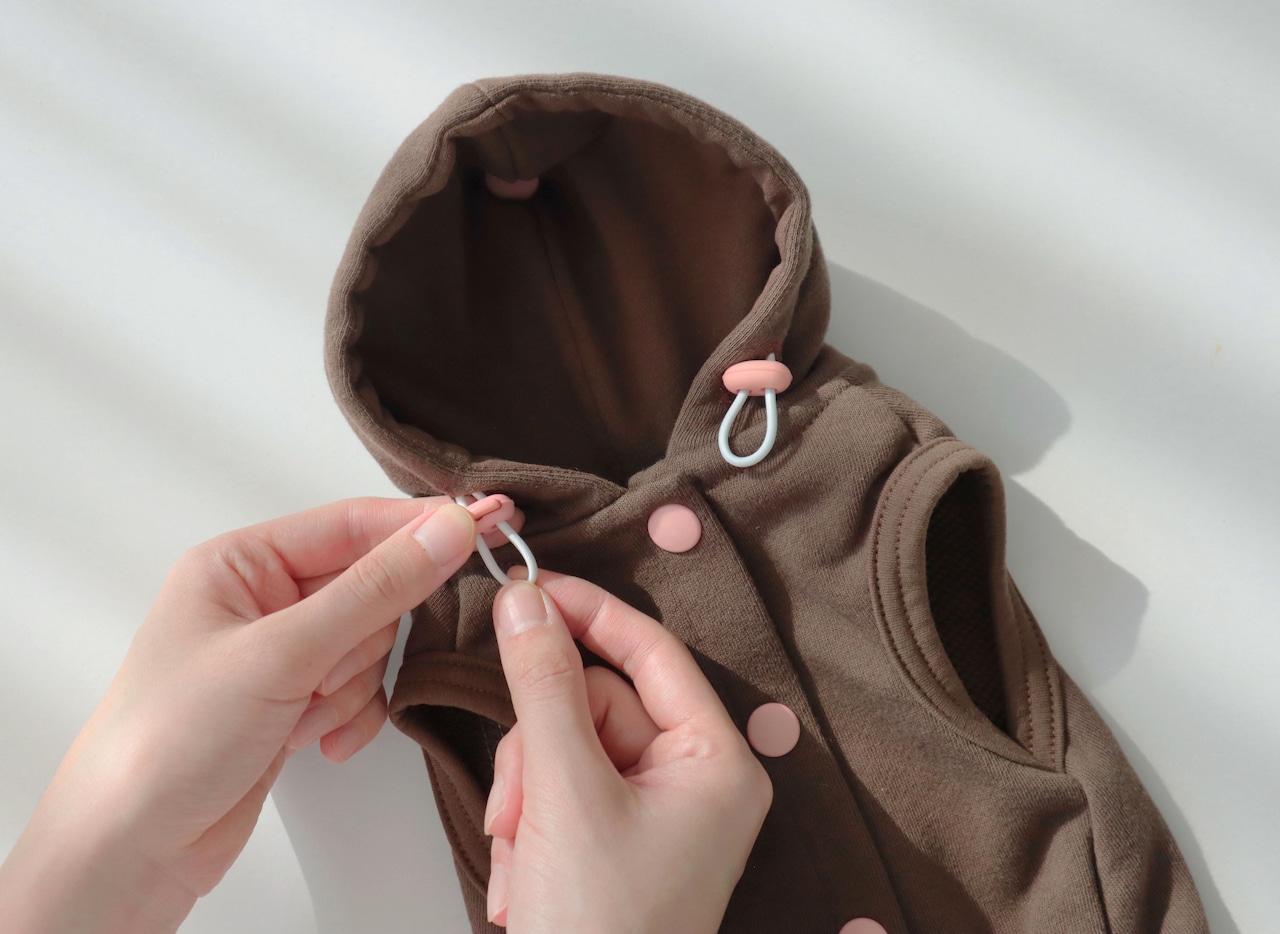 ・フードの揺れを防ぐため、スナップボタンが付いています。