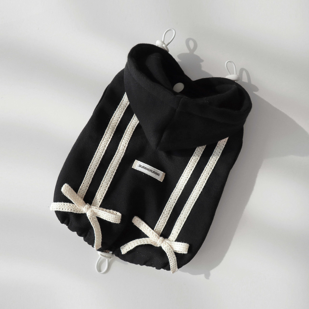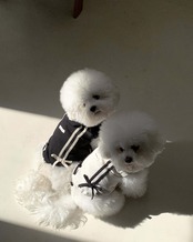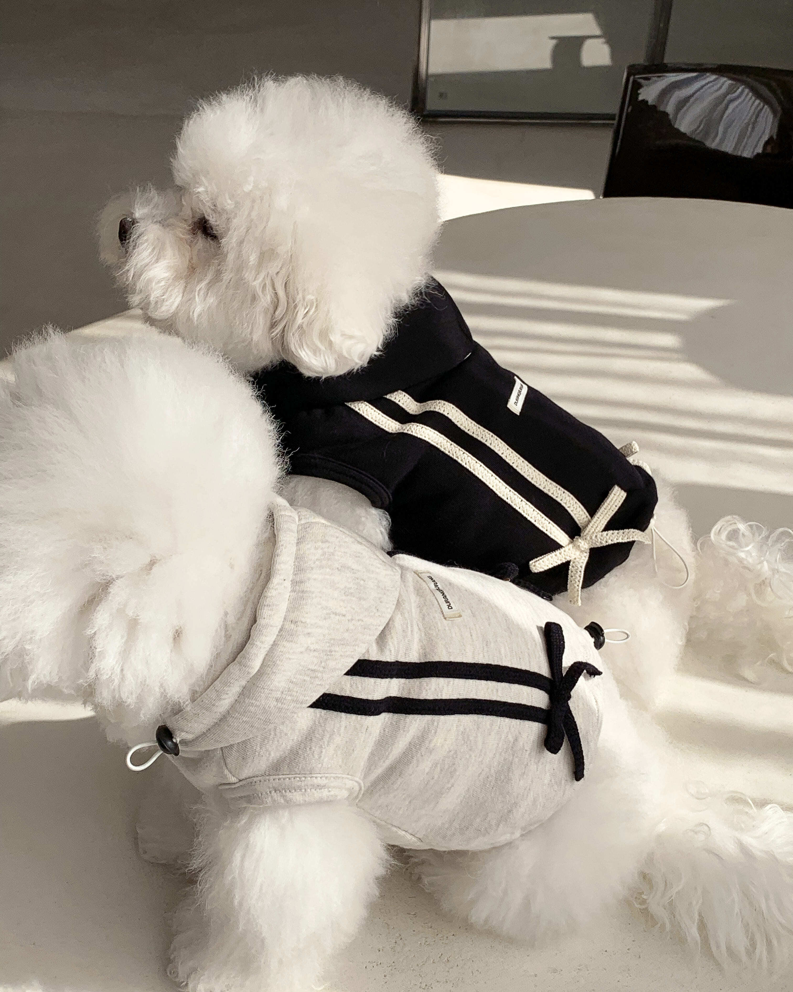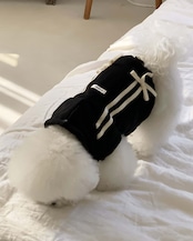 一緒に発売される、飼い主さま用のリボントラックジョガーパンツを合わせて