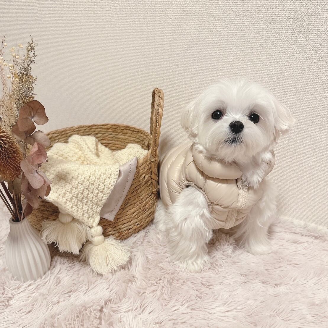 キキちゃん(マルチーズ)3kg Lサイズ着用(胸囲36cm 背丈27cm)