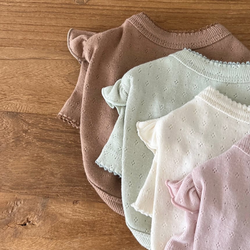 柔らかいアイレット生地に肩フリルがとっても可愛い
