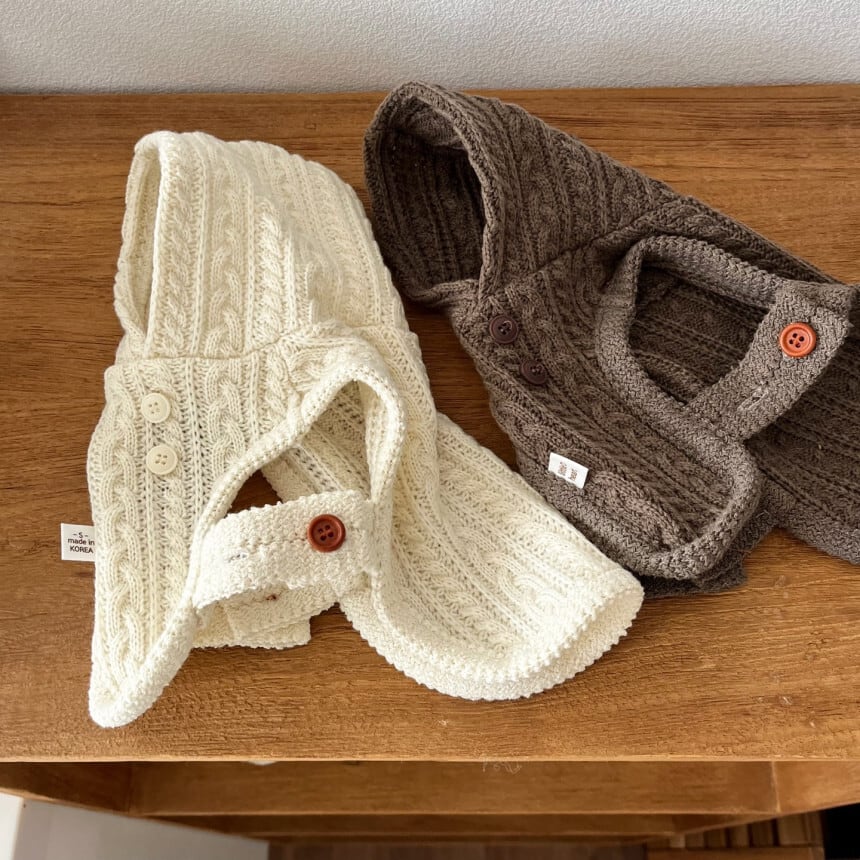 ニットのディティールとフードがカジュアルでありながらも