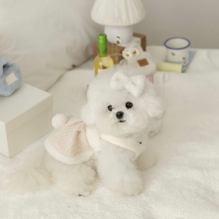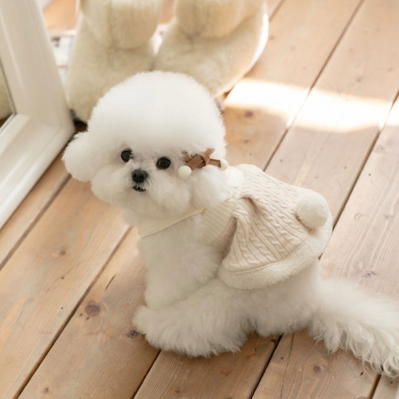 高級感のあるニット生地で製作された冬のムードたっぷりなワンピース。